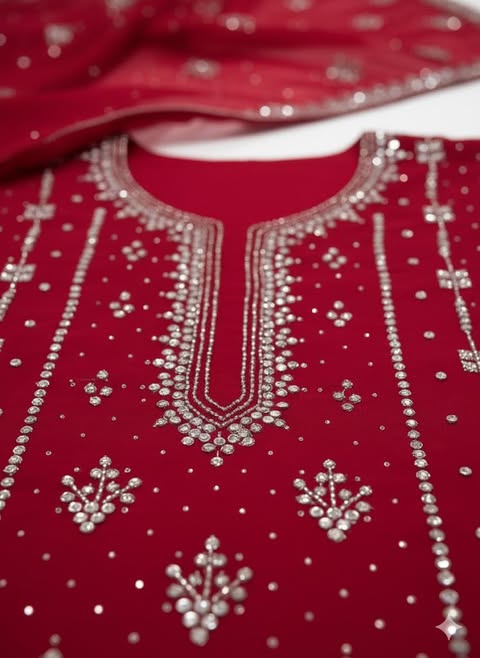 Our Mukesh Suit is designed to turn heads — hand-embroidered, luxurious, and effortlessly elegant.